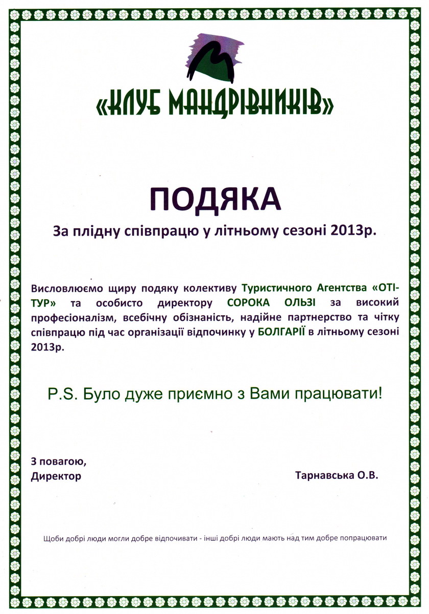 Чекаємо Вас у гості з понеділка до п’ятниці з 10 до 16 години за адресою: місто Львів, вулиця Лемківська, 16 (туристична агенція “OTI TOUR”)